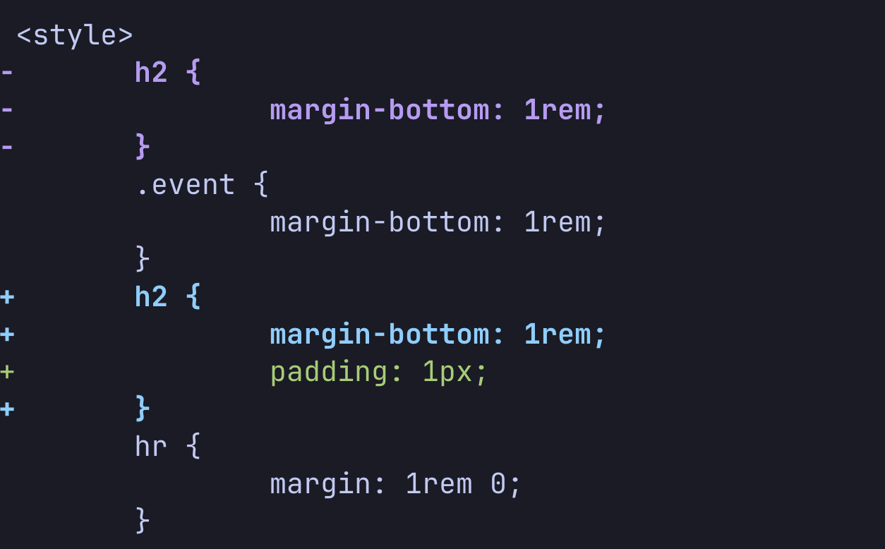 Вы видите, чем отличается перемещённый код и добавленная строка. При включённой опции colorMoved перемещение кода будет отображаться разными цветами, в зависимости от того, были какие-то строки добавлены или удалены.